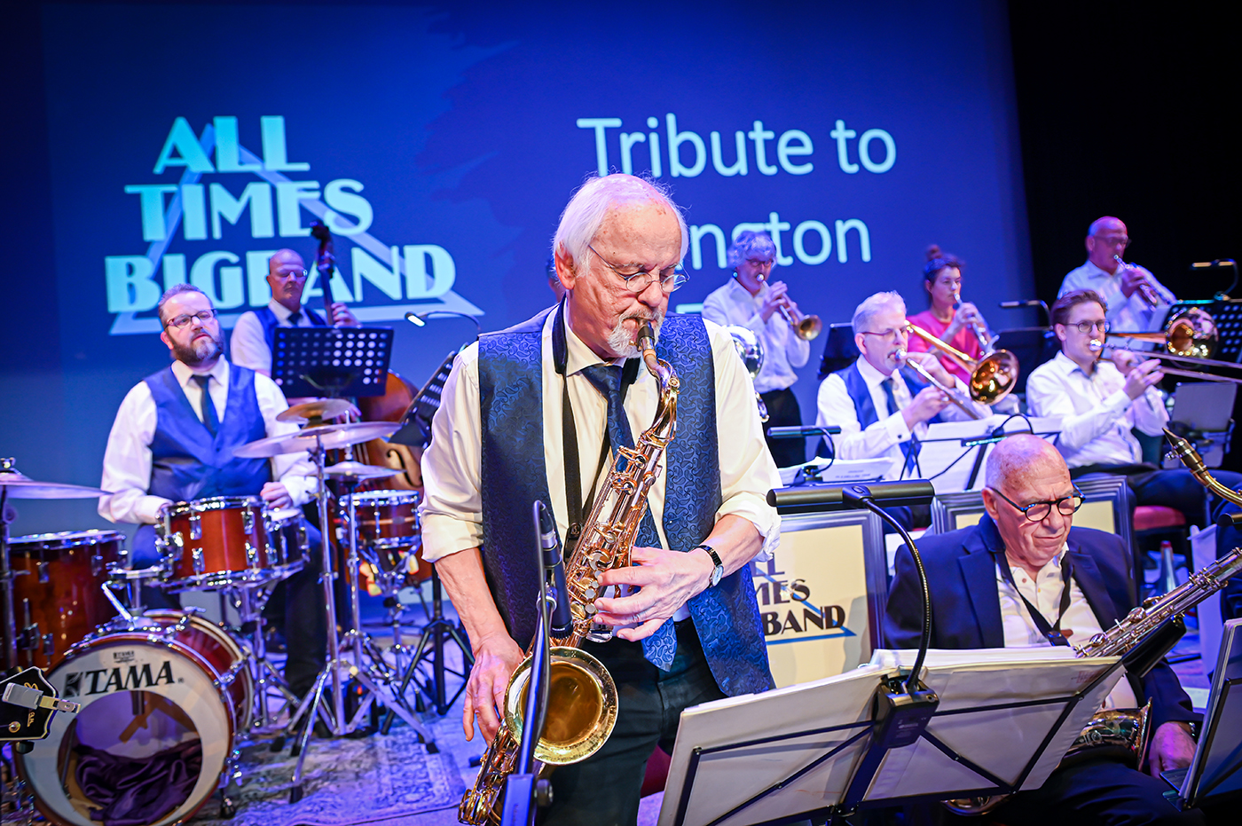 Het middagprogramma wordt afgesloten door de All Times Bigband uit Ermelo. Ze noemen zichzelf al ruim 40 jaar de meest swingende bigband van de Veluwe! Zeventien toegewijde muzikanten die samen bigbandmuziek uit verschillende periodes spelen. ‘Music of All Times’, als het maar swingt! Regelmatig werkt het orkest samen met professionele jazzmusici als gastsolist. In theaters in de regio en op feesten is de band een graag geziene gast. De All Times Bigband staat onder leiding van oud Skymasters trombonist Pieter van den Dolder, een ervaren specialist in dit repertoire.